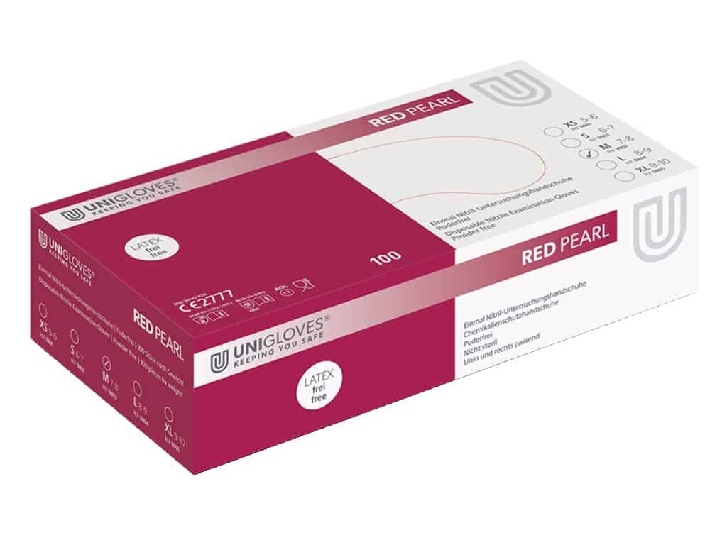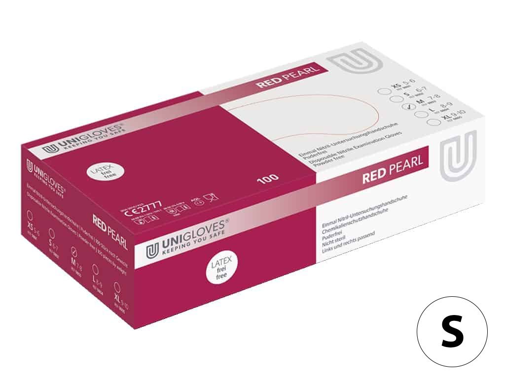 Unigloves nitrilové rukavice červené - Red Pearl, 100 ks, S