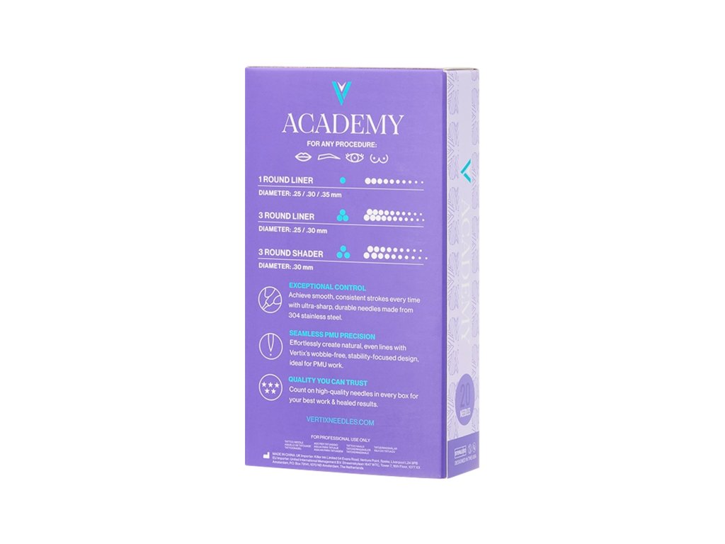 Vertix Academy Round Liner Long Taper představují kvalitní a cenově dostupné cartridge vyvinuté speciálně pro trénink a precizní práci v oblasti permanentního make-upu. Jehly jsou sterilizované, vyrobené z odolných materiálů a zajišťují plynulý tok pigmentu s minimálním traumatem pokožky.