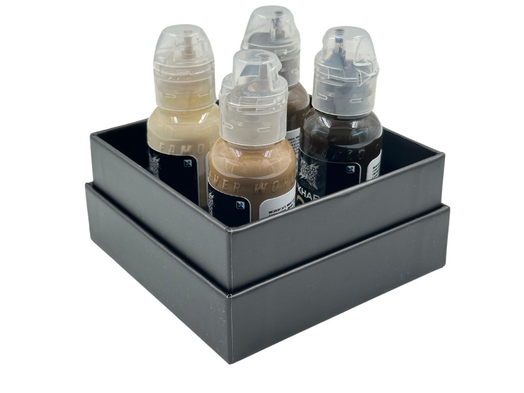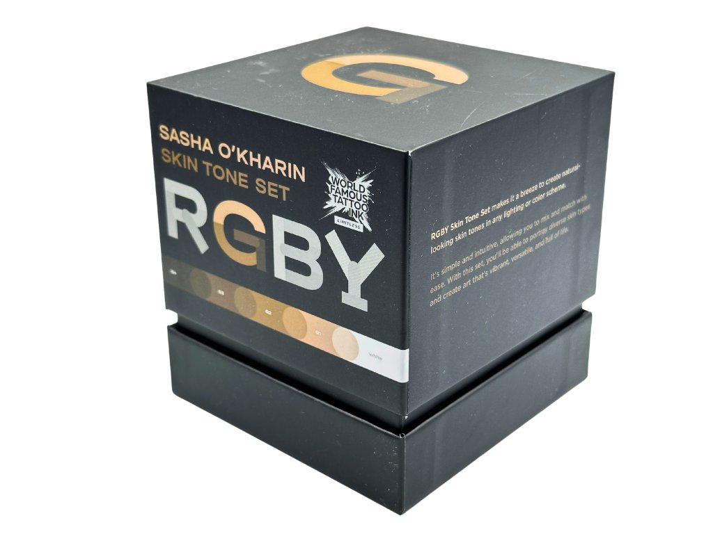 Sada Sasha O'Kharin RGBY byla navržena jako komplexní kolekce inkoustů pro tóny pleti s širokou škálou podtónů, stejně jako ty, které Sasha používá ve své vlastní práci. Každý tetovací inkoust je seskupen podle svého podtónu do červených, zelených, modrých a žlutých mini sad, což vám umožní vytvořit rozmanitou škálu odstínů lidské kůže pro tetování s neuvěřitelnou barevnou realitou.