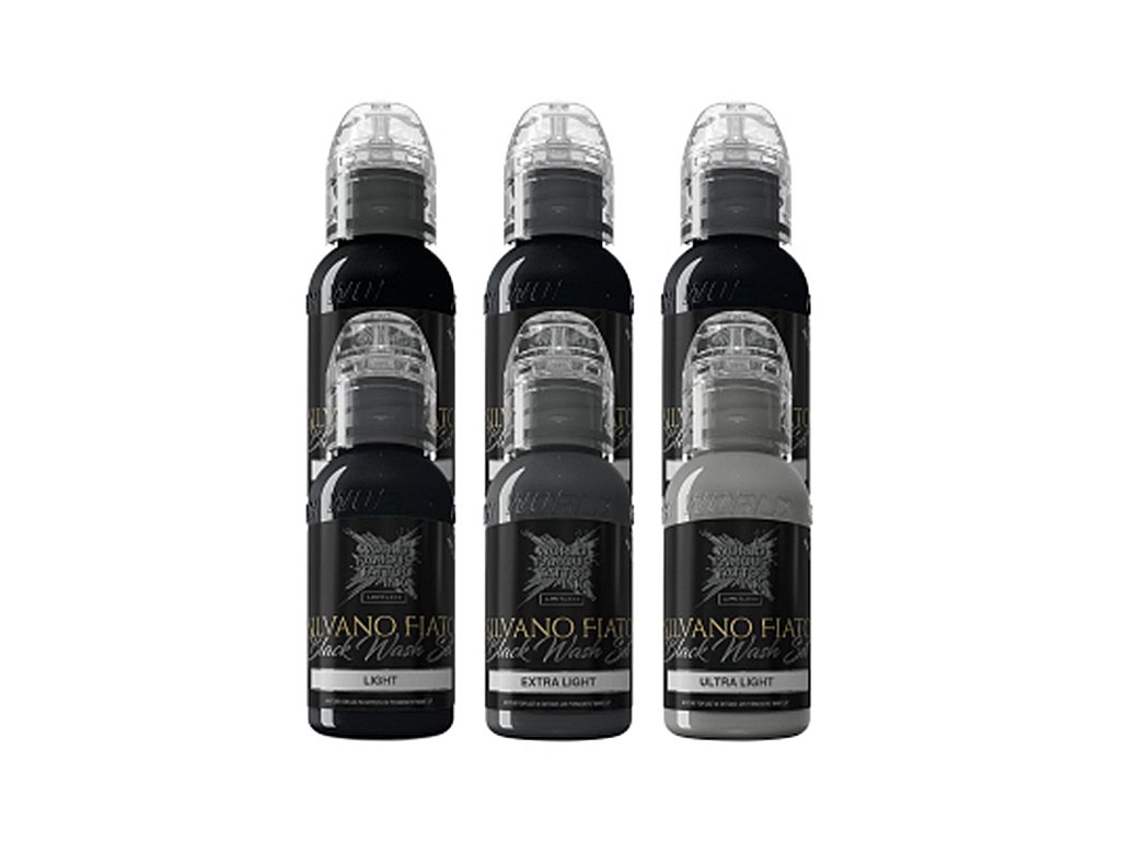 World Famous Limitless Silvano Fiato Blackwash Set byl vytvořen ve spolupráci s Forbesem uznávaným expertem na černé a šedé tetování Silvano Fiato. Tato sada 6 lahví je navržena pro neomezený potenciál stínování, ideální pro profesionály, kteří chtějí pozvednout své černé a šedé umění.